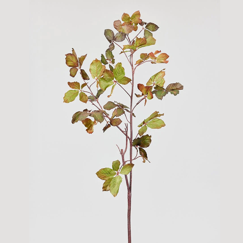 Simple and elegant, our wine faux leaf branch introduces butterfly-like leaf shapes with the slightest tint of Autumn hues.